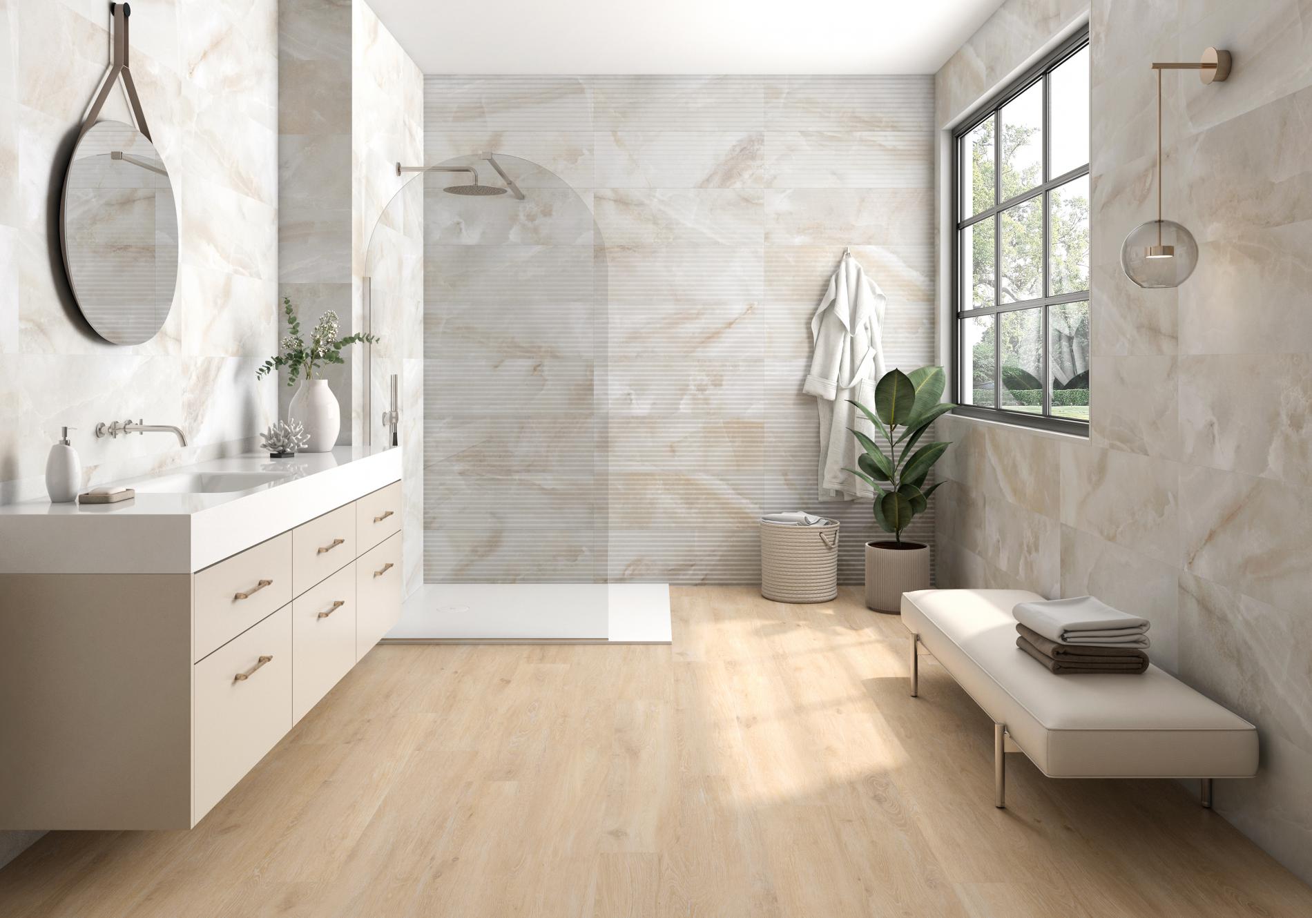 60,8x60,8 BLAZE MARFIL<br>30,3x61,3 BLAZE TAUPE<br>20x120(n) AT.VIGGO NOGAL<br>
